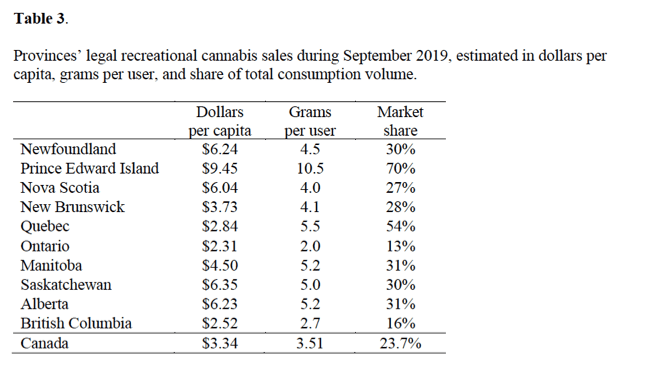Michael J. Armstrong, “Legal cannabis market shares during Canada’s first year of recreational legalisation”, International Journal of Drug Policy, Volume 88, February 2021, 103028,