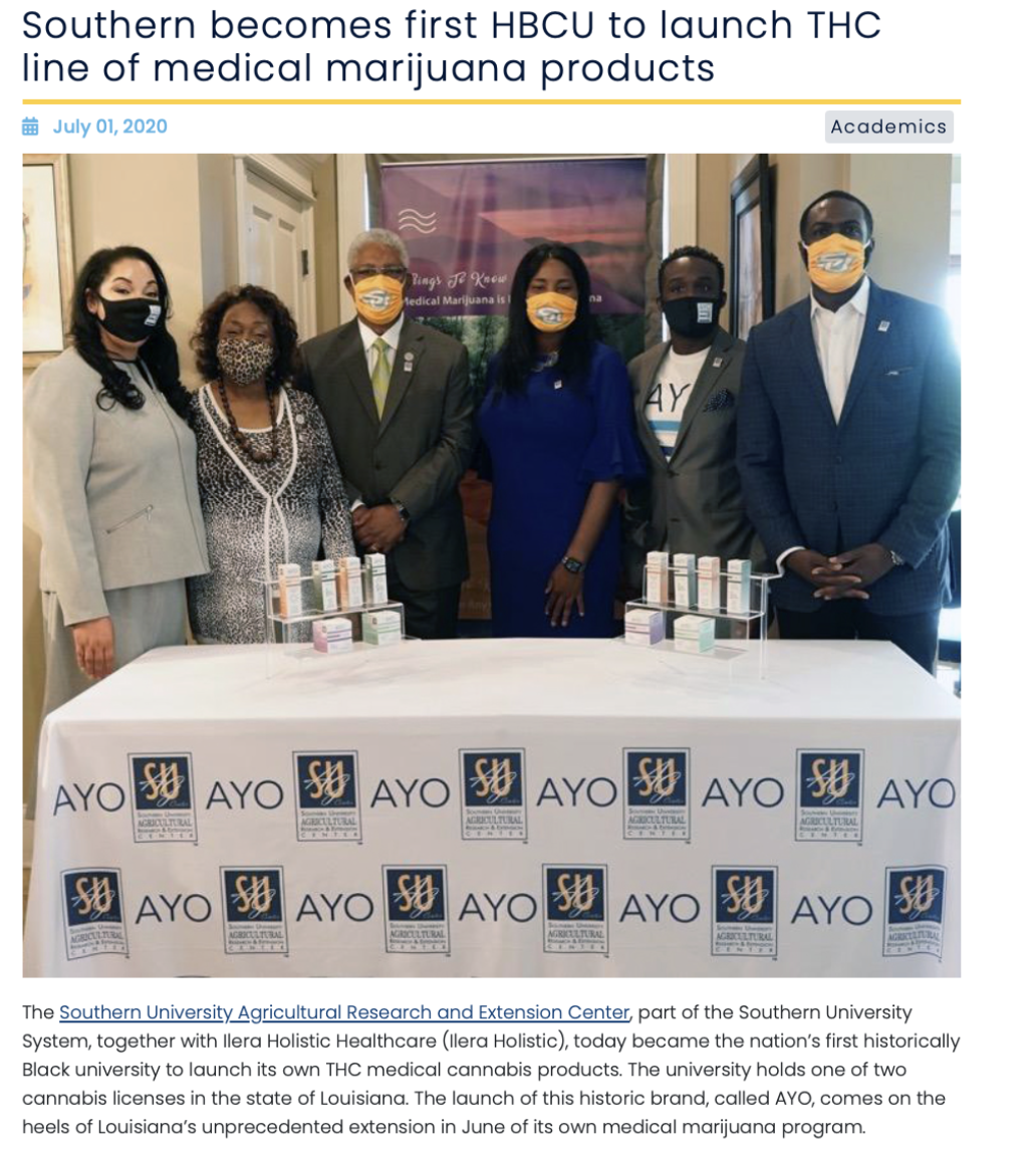 Louisiana’s two land grant state universities had a state monopoly to produce medical marijuana for years before private industry shoved them aside. Here’s a photo from the HBCU, whose inclusion in legislation may have helped with social equity concerns: